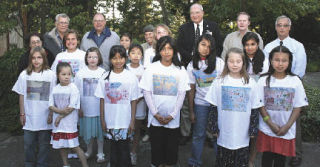 The 2008 Lakehaven Utility District Water Conservation Poster Contest winners pose in front of Lakehaven’s water conservation garden. First row: Maya Zaldivar