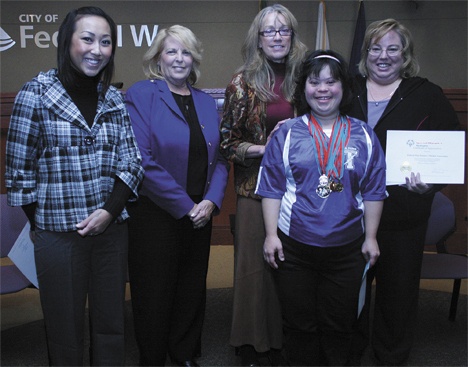 On behalf of the Federal Way police, a check for $1,570 was presented to Special Olympics Washington. Multiple medalist Kimberly Bench, Special Olympics campaign manager Mary Do and interim police chief Andy Hwang accepted the check for the charity.