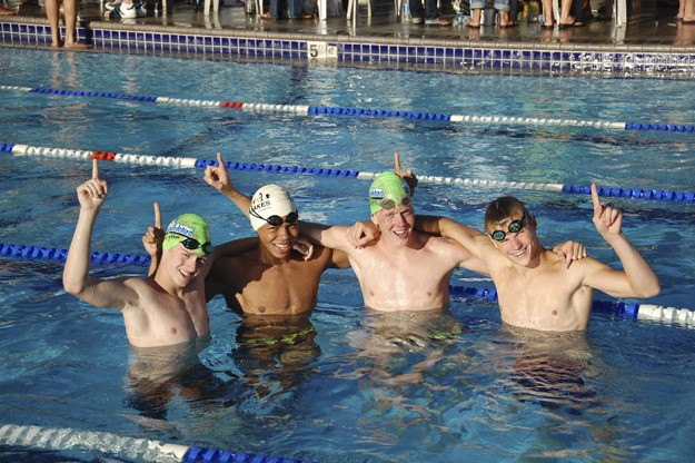 Tanner Brotherton, Connor Hassur, Noah Johnson, and D’Voreaux Cann teamed up to swim the relay in 1:29:81, breaking the 1:30:12 time set by their 1993 counterparts.
