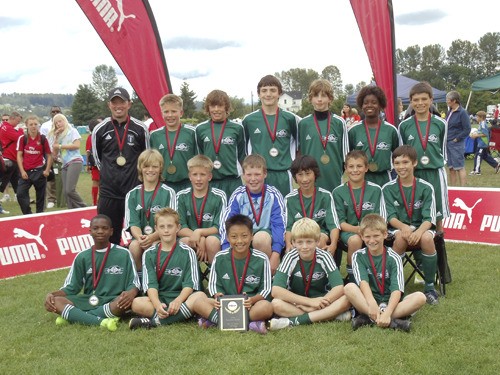 The championship game pitted Federal Way against the Franklin Pierce Soccer Club, ’97 Furry. The Federal Way boys won the premier bracket division final game by a score of 3-1, giving them a 5-0 record.