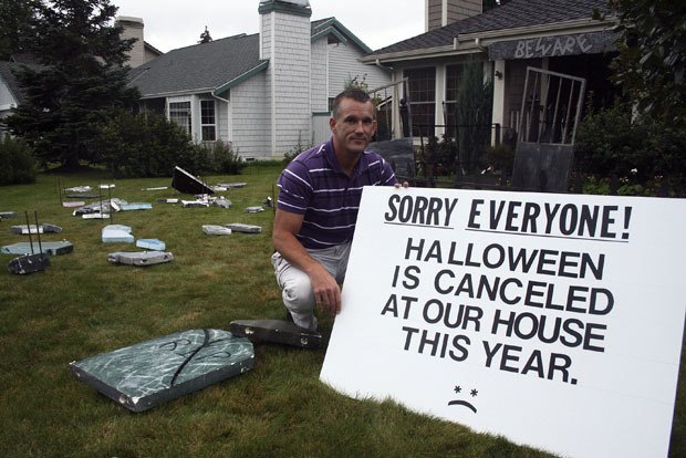 Several neighbors stopped by to express their disappointment and offered to help clean up Thursday evening after Stansbury returned home from work. Those well-wishers included Steve Irwin, whose Halloween decorations on SW 325th Place were also damaged overnight.