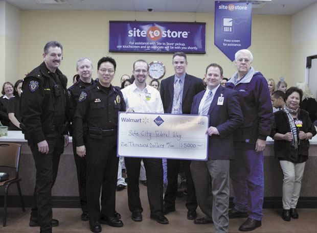 On Thursday, the Wal-Mart Supercenter presented Federal Way police with a $5,000 check to purchase and mount the city’s 35th Safe City camera on 16th Avenue South and South 344th Street. The camera will monitor the streets as well as Wal-Mart’s parking lot.