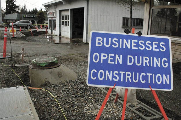 Despite signs that alert motorists to business entrances, the construction has frustrated some business owners along Pacific Highway.