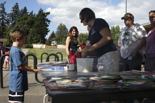 Hundreds of books were distributed at Crosspointe Apartments, Pinewood Village Apartments and Rainier View to more than 20 families at each site. Volunteers also handed out free root beer floats.