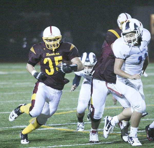 Things didn’t start out too well for the Raiders. Mount Rainier junior quarterback Logan Wagner hit Tavess Vontress for a 65-yard touchdown pass early in the first quarter to put the Rams up 6-0.