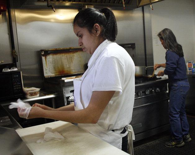 Ivette Estrada, 21, helps twice a week at 3 Dog Deli in Federal Way. Her general duties include preparing food, washing dishes and whatever else needs to be done. On Monday morning, Estrada made meatballs and menu items for the lunch hour.