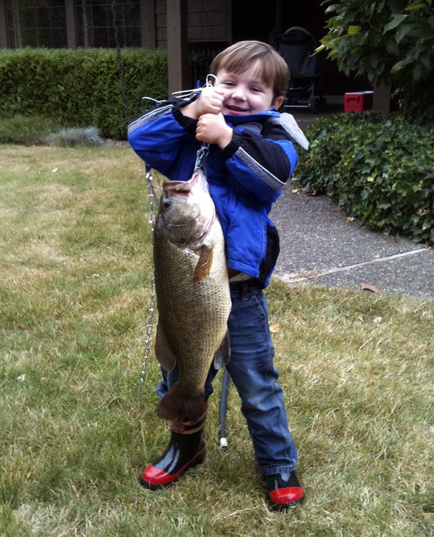 Max Barrett, age 3 and a half, caught this large mouth bass on Saturday at Steel Lake in Federal Way.