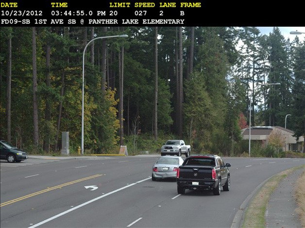 Note: Federal Way Police Chief Brian Wilson responded to this letter with photos and a video of a black Cadillac Escalade registered to Mr. Trigg, traveling 27 mph in a 20 mph school zone. The truck is seen passing on the right. Click here to see the video.