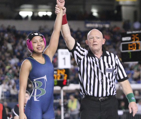 But Carpio got some redemption in February when she won the 112-pound state title, completing a perfect 23-0 season with a pin over Kentridge’s Taylor Lee.