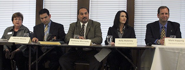 All three candidates highlighted their own service backgrounds. Koppang said he wants to improve what’s already in place and work collaboratively with the council. He said his volunteer experiences have exposed him to multiple facets of life in Federal Way, giving him a personal and professional understanding of what the citizens need. Maloney said her past marketing work with the city has helped lure businesses and her initiatives have taken citizens forward. Murrietta said his experience as president of the Teamsters Local 763 union have taught him how to work with governments and municipalities through sometimes tense negotiations.