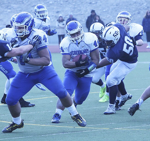 Federal Way senior Eric Ah Fua runs the ball during the Eagles' 40-7 loss to Chiawana Saturday at Edgar Brown Stadium in Pasco.