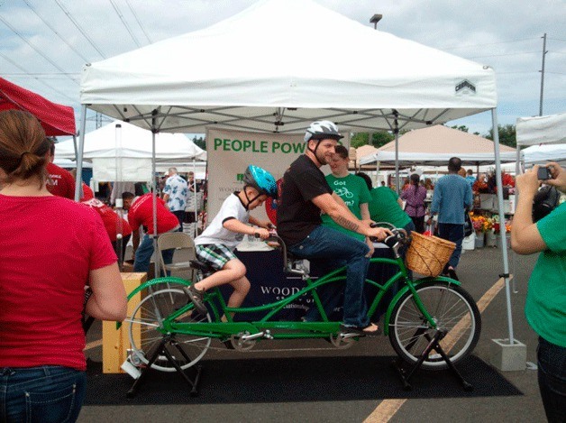 A family rides a bicycle through the Federal Way Farmer's Market during the annual Family Safety Day in 2013. This year's event is set for July 19.