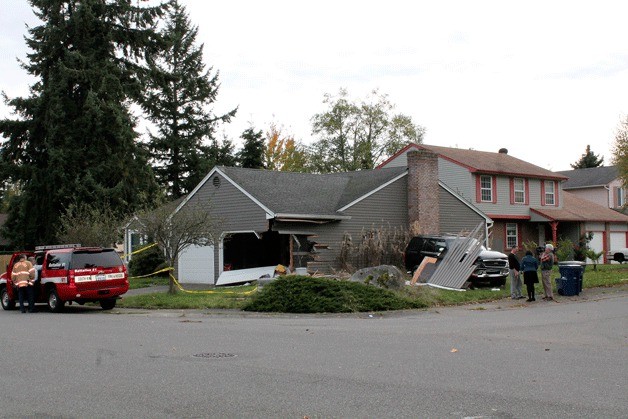 Man crashes vehicle into Federal Way home, truck | Photos