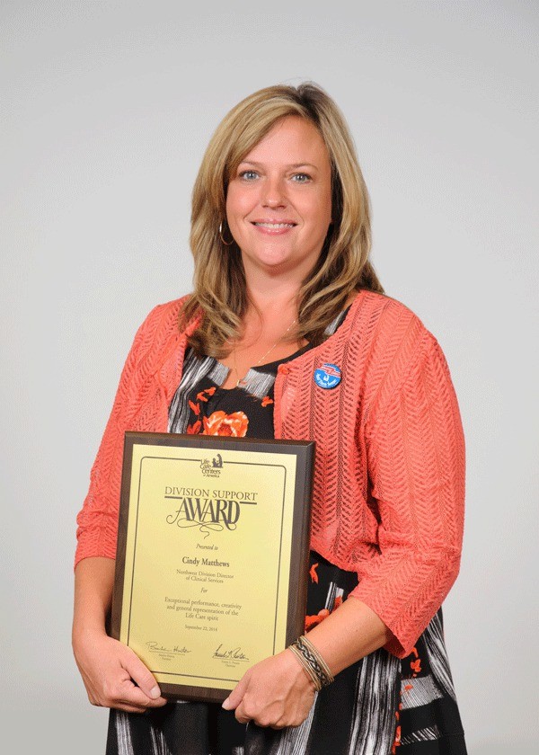Life Care Centers of America recently honored Cindy Matthews, director of clinical services for its Northwest Division, with its company-wide Division Support Award. Matthews works in the company’s Federal Way office.