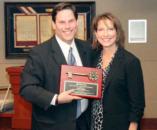 Hickel receives Key to the City from Federal Way mayor