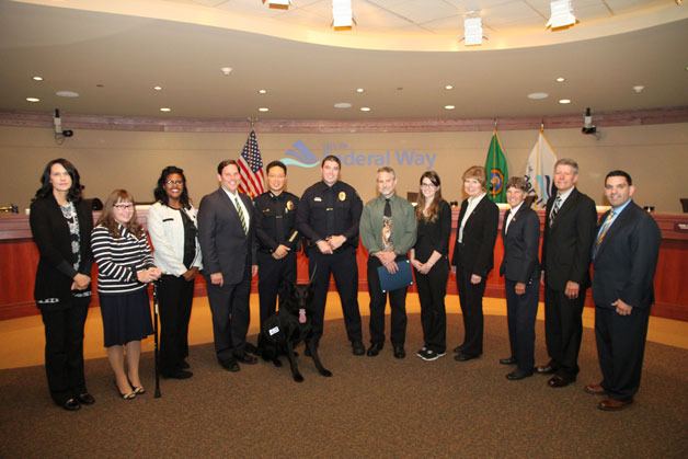 Federal Way police chief presents certificate to animal hospital
