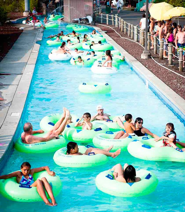 People relax on water tubes at Wild Waves Theme Park's Konga Lazy River. The water park is expecting visitors to flock to the summer attraction this weekend as temperatures soar.