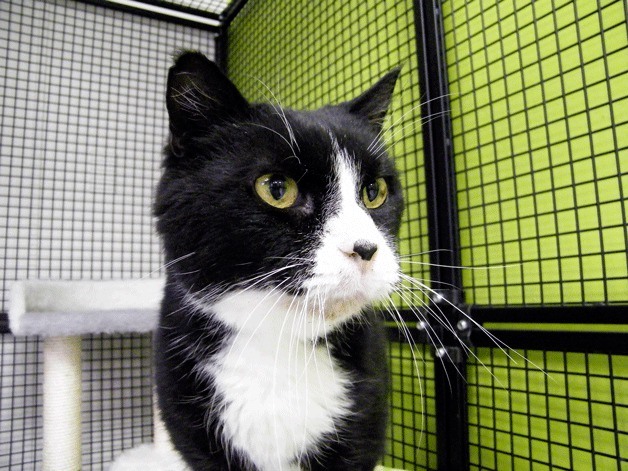 Meatball is a 16-year-old male cat, domestic short hair, black and white (ID No. A480023).