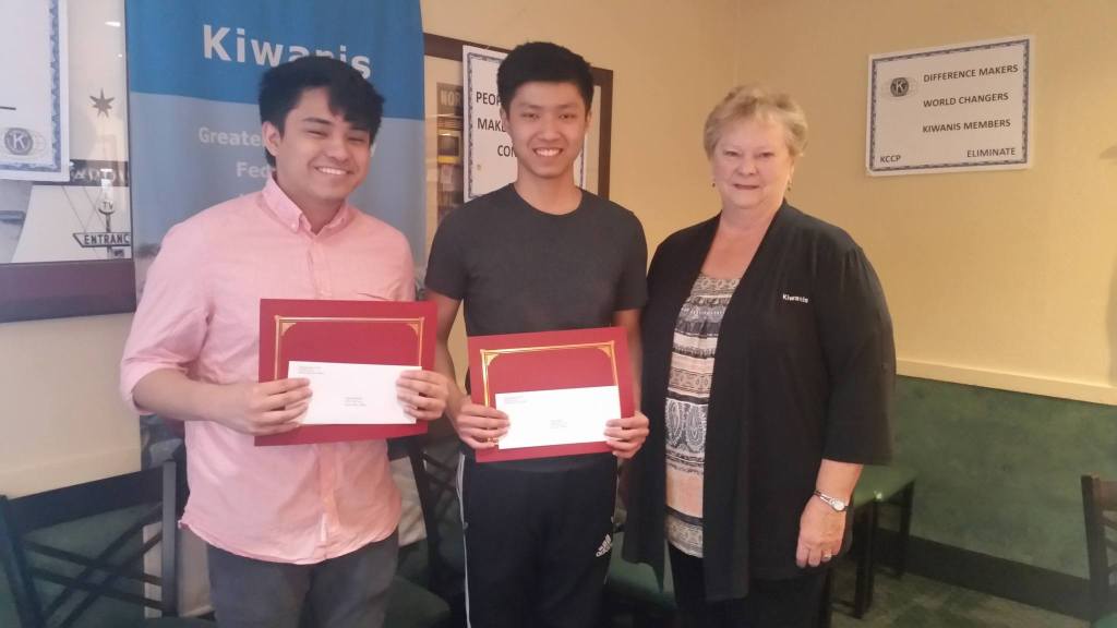 The Kiwanis Club of Greater Federal Way last month awarded $1,000 scholarships to both Sam Hipolito and Bryan Hsieh, then seniors at Thomas Jefferson.