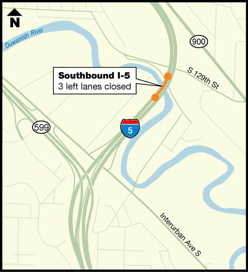 Separately, about 18 miles away, all lanes of southbound State Route 167 will be will be closed in Pacific. Contractor crews there will close all lanes of southbound State Route 167 between Ellingson Road and Eighth Street East in Pacific to replace a culvert under the highway.