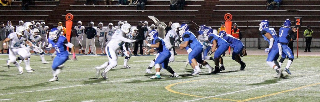 After taking the opening kickoff, the Ravens needed just seven plays to go 80 yards for the opening score. Junior running back Sam Braboy took an option pitch from quarterback Tiano Malietufa 47 yards for the score, giving the Ravens the 7-0 edge.