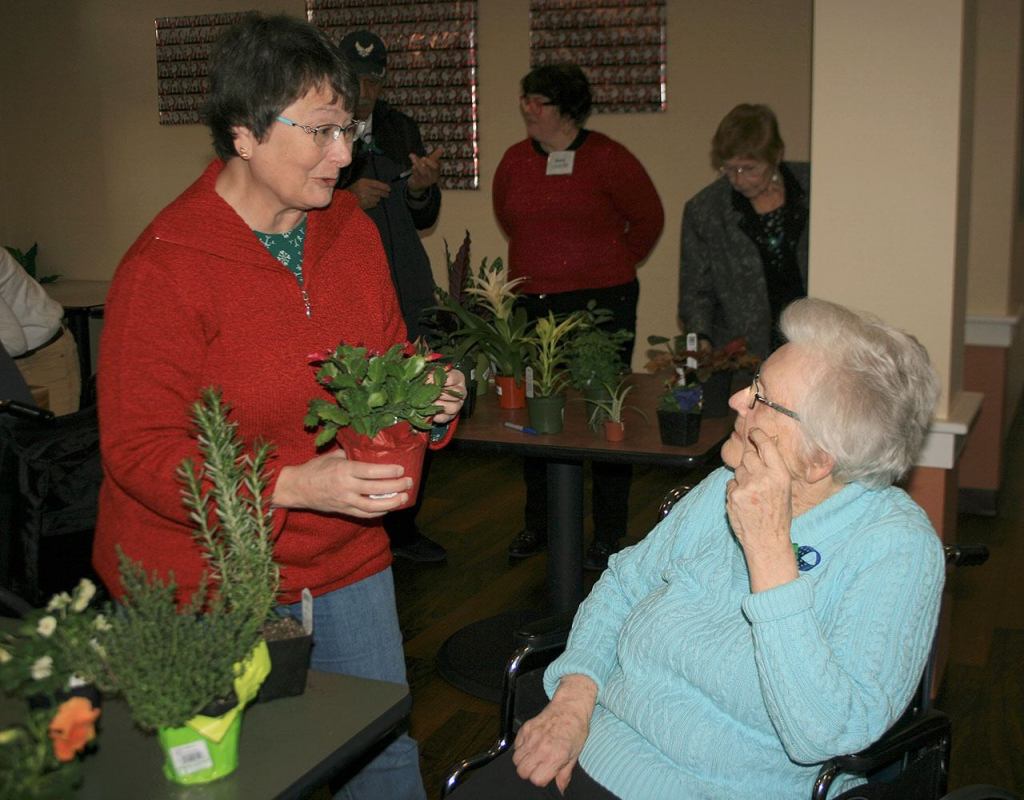 Eldergrow employee Dana Staikides, left, helps Madrona Park assisted living resident Willie Salter dislodge a plant from its pot before planting it in a special indoor garden, Dec. 16. Madrona Park memory care residents helped design and plant their garden, which Orla Concannon, who started the Eldergrow program, said gardening provides therapeutic benefits, such as reducing agitation, to the residents. Jessica Keller, the Mirror