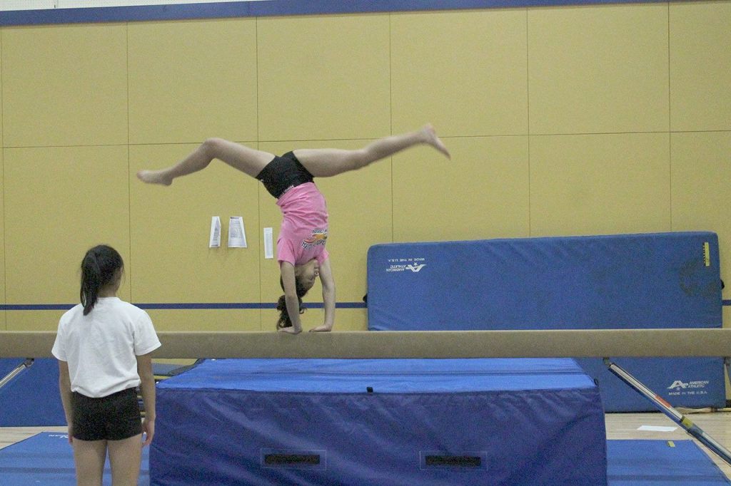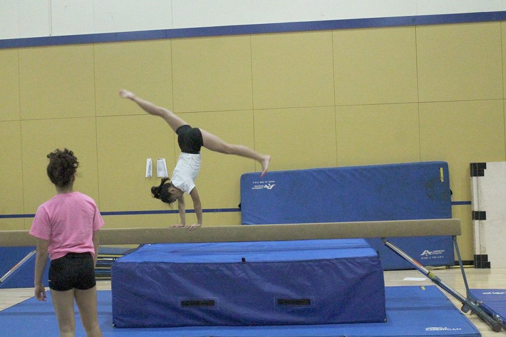 Teammates watched others routines, offering words of encouragement. Others worked together on the balance beam and uneven bars, all doing things in pairs or small groups.