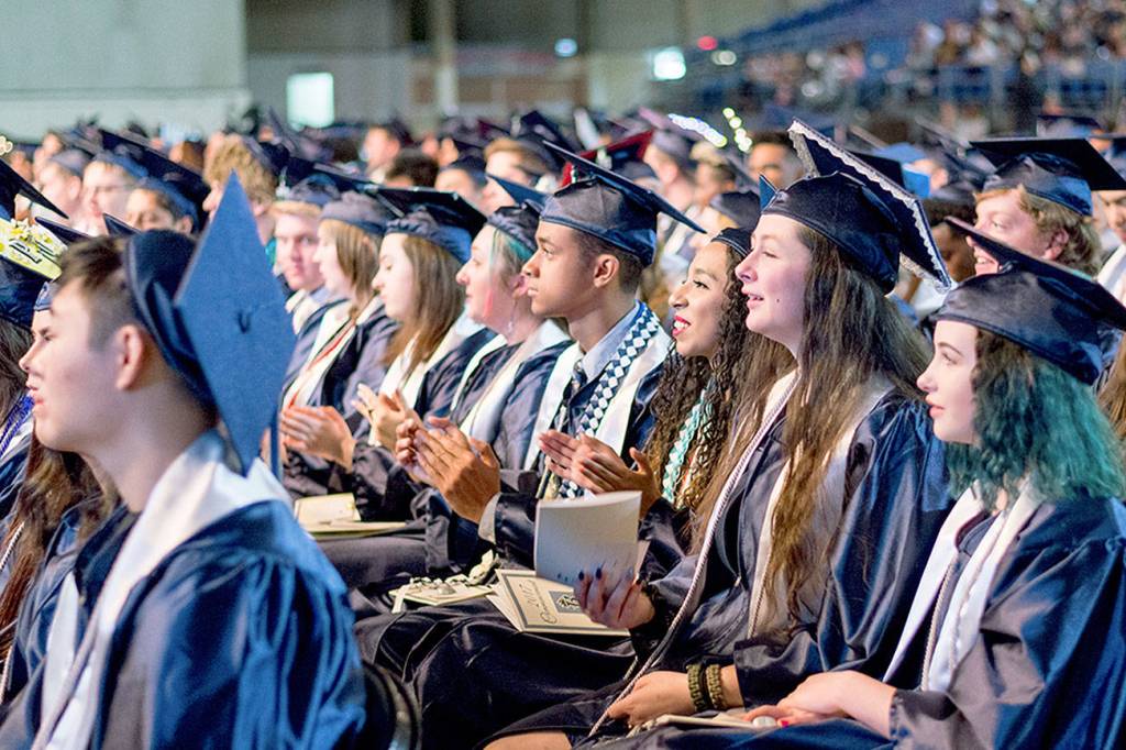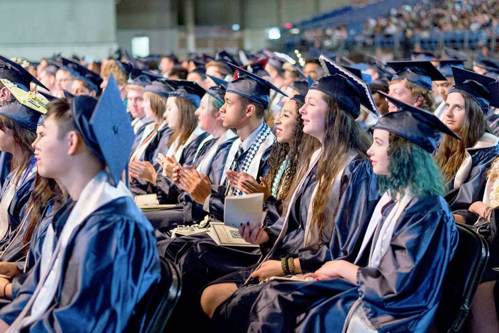 Members of the Todd Beamer High School class of 2017 listen during graduation ceremonies Saturday at the Tacoma Dome. Photo courtesy Federal Way Public Schools