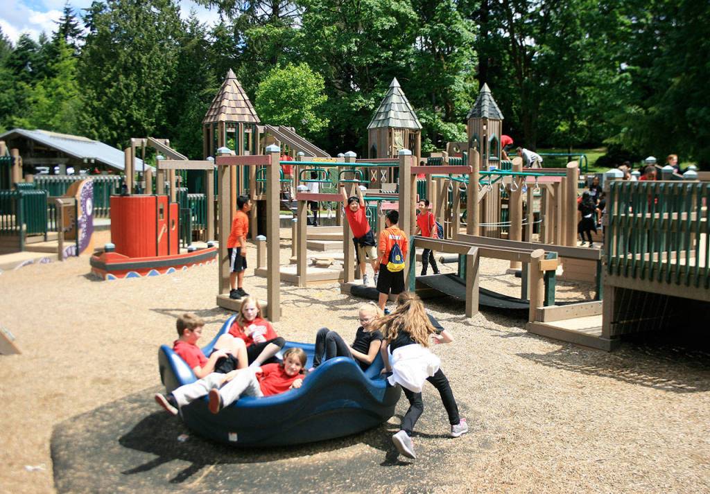 Steel Lake Park, which is situated on 52 acres, attracts not only Federal Way residents, but also draws in visitors from the region. In addition to the playground, it features a beach, natural area, parking, picnic area, restrooms and walking trail. It also has horseshoe pits and a skateboard park across the street, a sand volleyball pit and swimming with lifeguards from June 20 through Sept. 7. The lake has a small boat launch, and canoes, row boats and paddle boats are permitted.