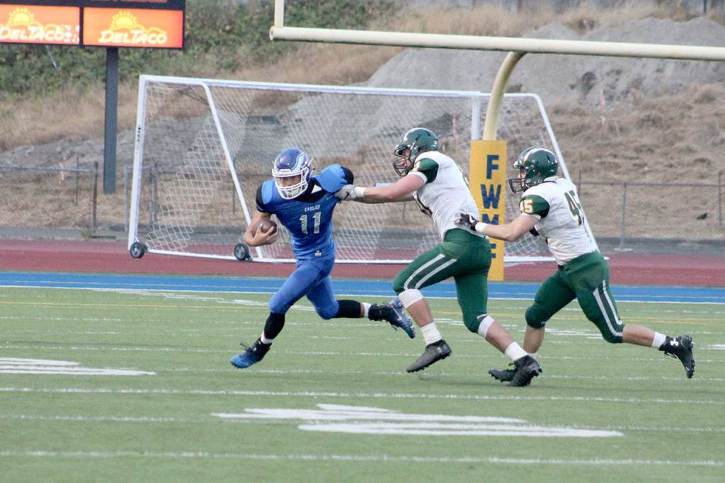 Federal Way quarterback Solomon Bang rushed for two touchdowns and threw for one in the Eagles 28-7 win over the Kentridge Chargers on Sept. 7. JEROD YOUNG, the Mirror