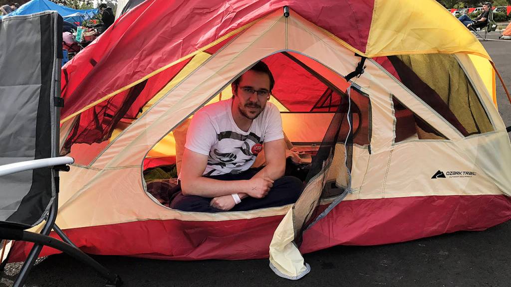 “It was kind of spur of the moment,” said Andrew McBride, who arrived at 5:30 a.m. with two friends. “We were the first ones in the parking lot.”