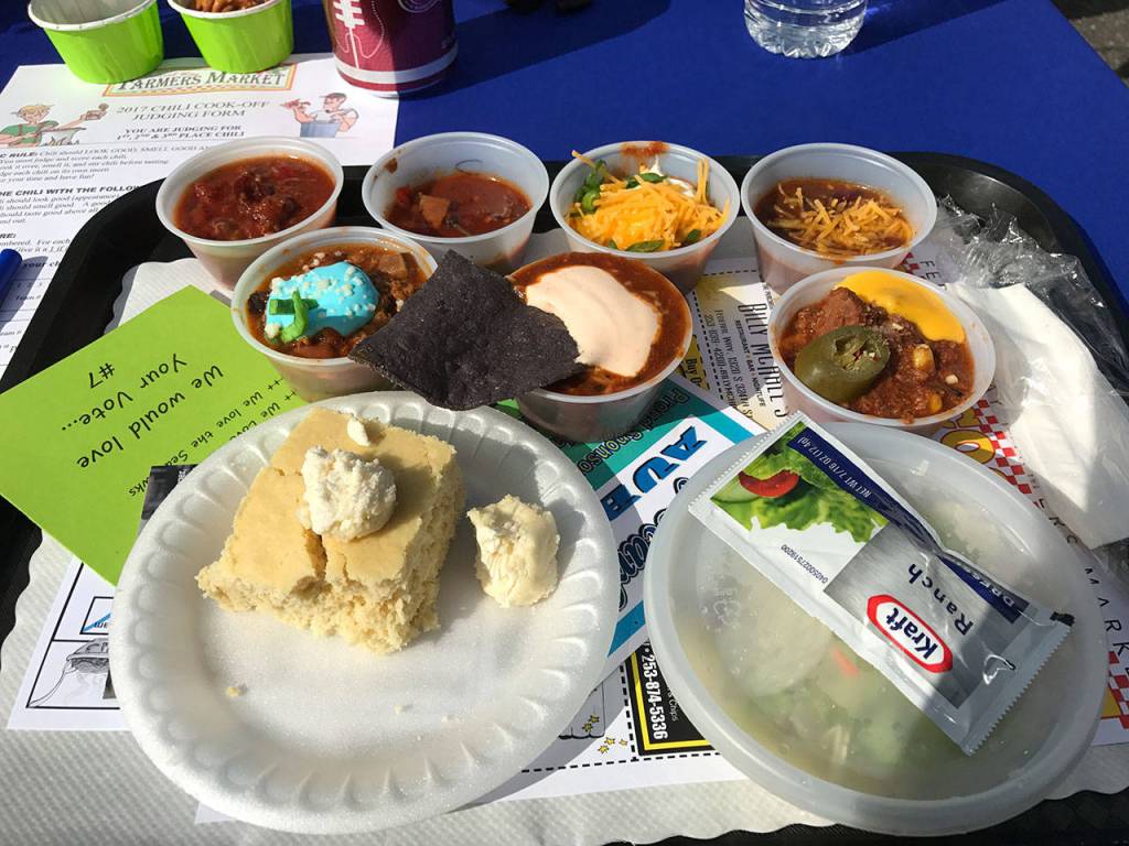 The 10th annual Federal Way Farmers Market Chili Cook-off took place beneath sunny skies Sept. 23 at the Commons Mall with special guest judge Jordan Babineaux, former safety for the Seattle Seahawks. Seven local restaurants teamed up with local non-profit organizations, and $10 from every ticket went toward these groups (total amount not available at press time).