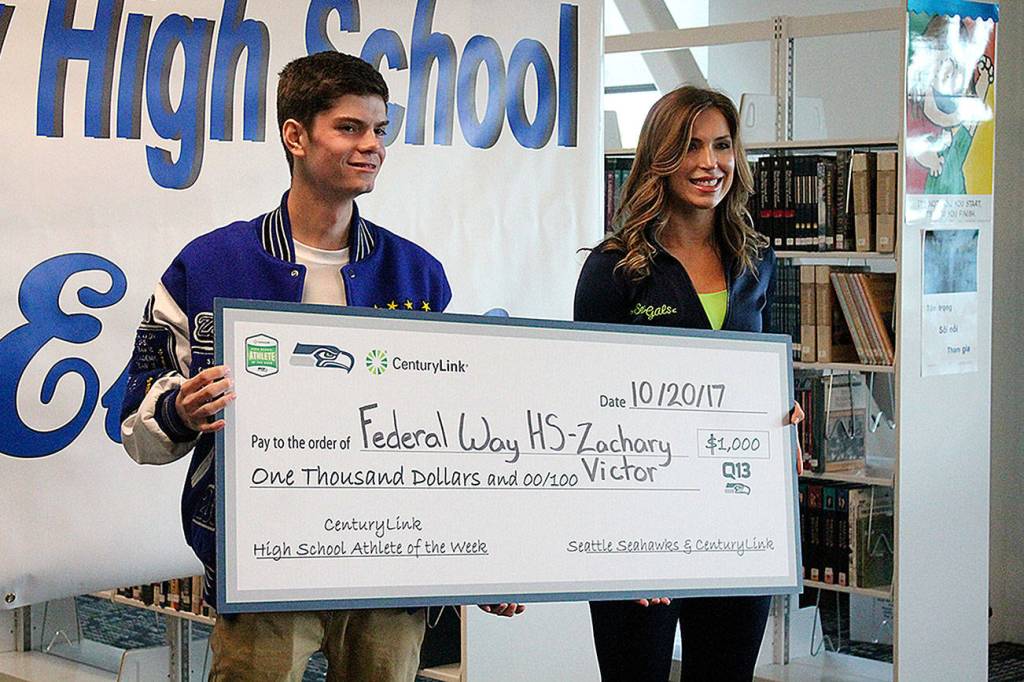• The Seattle Seahawks, CenturyLink, Inc. announced Zachary Victor, a senior golfer at Federal Way High School as the week six CenturyLink High School Athlete of the Week. Victor will be recognized on the field at CenturyLink Field during the Seahawks Nov. 5 game vs. the Washington Redskins.