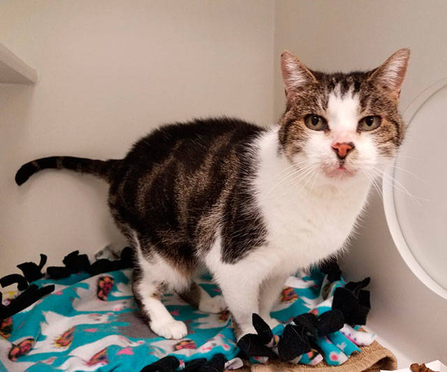 Luna is a 14-year-old female cat, tabby, brown and white, domestic short hair (ID #A543267). This affectionate lovebug would be thrilled to cuddle up with you at home. She is an adaptable cat who loves to go with the flow. She is outgoing and carefree. Luna was brought in by her previous owners because they were moving out of the country. She has lived in a home with one other cat and a medium-sized dog. Her previous owner described her as loving. She gives gentle headbutts when you pet her. Luna is spayed, litter-box trained, current on vaccinations and micro-chipped. Her $30 adoption fee also includes a free office visit to the veterinarian of your choice and 30 days of pet insurance through Trupanion. You can find out more about Luna on RASKC’s website at www.kingcounty.gov/adoptapet. Click on “cat,” and type in her name. You can meet other animals available for adoption in person, seven days a week, at RASKC’s King County Pet Adoption Center in Kent, 21615 64th Ave. S.; Monday: 3 p.m. to 6 p.m., Tuesday to Friday: noon to 6 p.m., Saturday and Sunday: noon to 5 p.m. Call 206-296-PETS, or email pets@kingcounty.gov.
