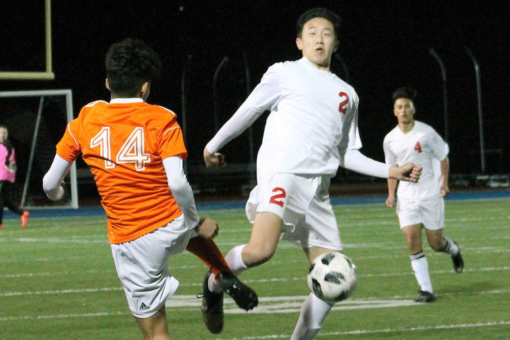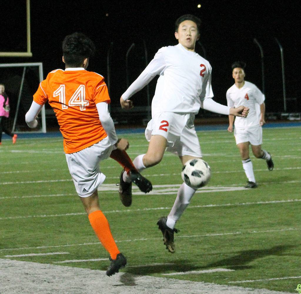 Thomas Jefferson junior defender Jared Tran and Decatur junior forward Enrique Blanco-Cornelio (14) vie for possession of the ball in their North Puget Sound League game Tuesday, March 27 at Memorial Stadium in Federal Way. The Gators held off the Raiders, 1-0. Sophomore forward Emmanuel Musgrove scored the game’s lone goal in the 27th minute off an assist from junior midfielder/forward Dima Zorchenko. The Gators improved to 3-1 in league, 3-2 overall with the win. They take on winless Enumclaw at 5 p.m. Friday, March 30 at Decatur. The Raiders, 0-4 in league, 0-5-1 overall, play Auburn Mountainview, 2-2 in league, 2-3 overall, at 7:30 p.m Friday, March 30 at home. Jessica Keller, the Mirror