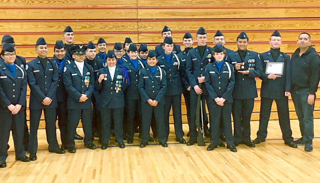 Federal Way High School’s Air Force JROTC drill teams competed at the subject championship March 17 at Marysville-Pilchuck High School. The top three teams in each category, from each of the four divisions, competed. Federal Way sent all of its teams, but just the Color Guard Team Two and Cadets Patricia Arango-Lopez and Elian Raspa placed.