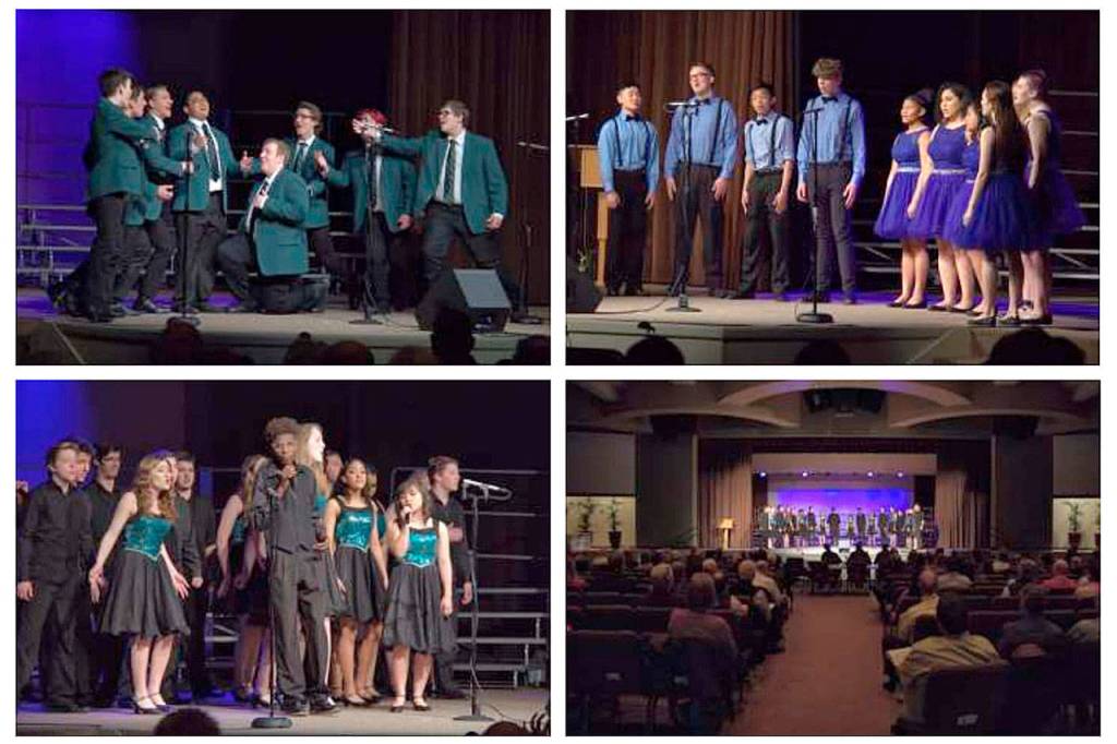 Singers from the five states and two provinces that comprise the Evergreen District of the Barbershop Harmony Society met April 21 at Journey Church in Federal Way to compete for the chance to go to the international competition this July in Orlando, Florida.