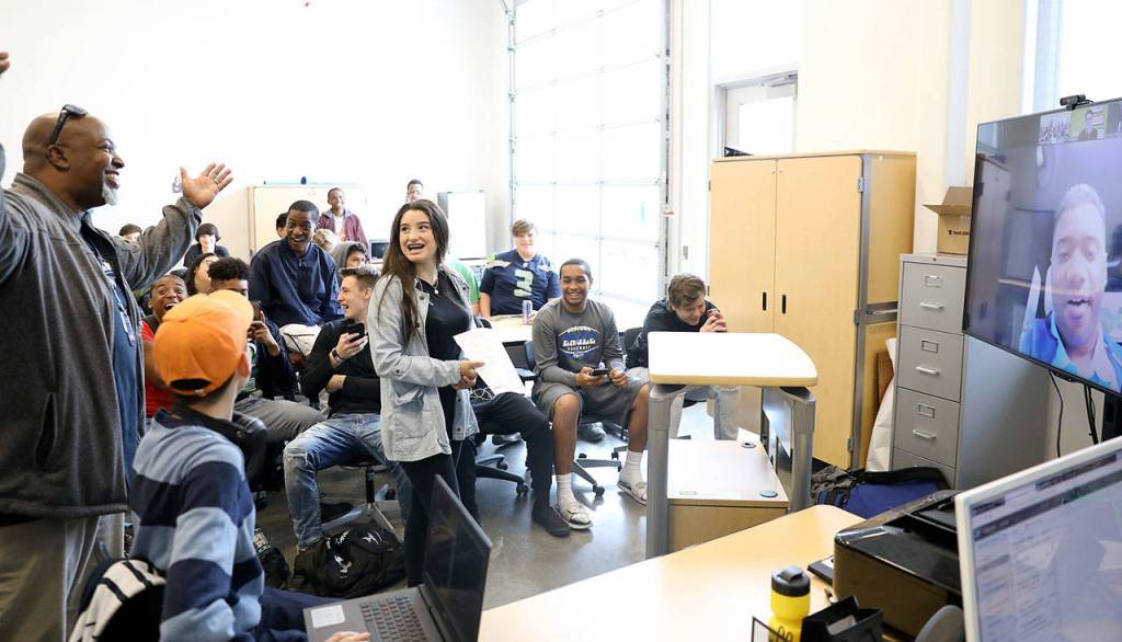 Federal Way High School students won a video chat with Seattle Seahawks quarterback Russell Wilson through a computer coding challenge with Code.org.