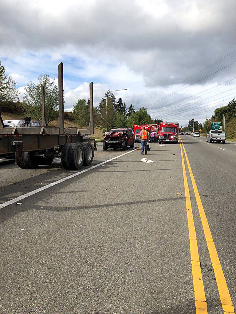 SUV collides with semi truck on 320th in Federal Way