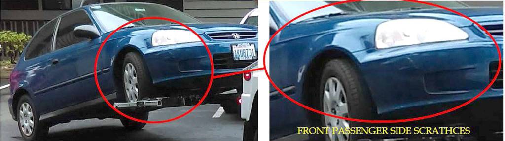 This blue 1999 Honda Civic was used during a drive-by shooting on Nov. 26 along Pacific Highway South. Photo courtesy of the Des Moines Police Department