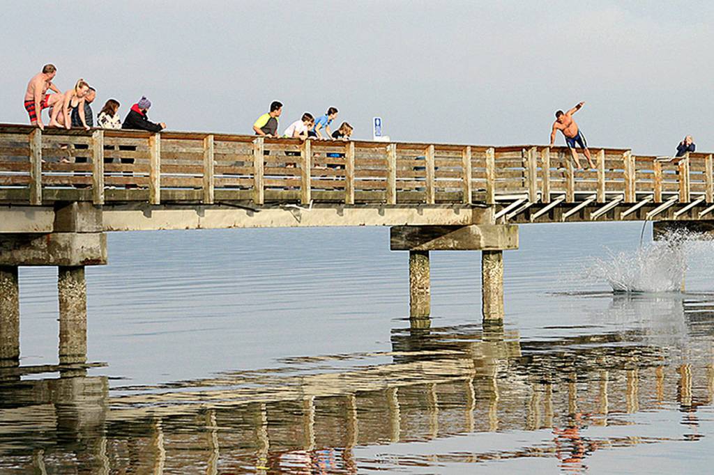 Residents of Northeast Tacoma and Browns Point gathered at Dash Point pier for the community’s annual plunge.