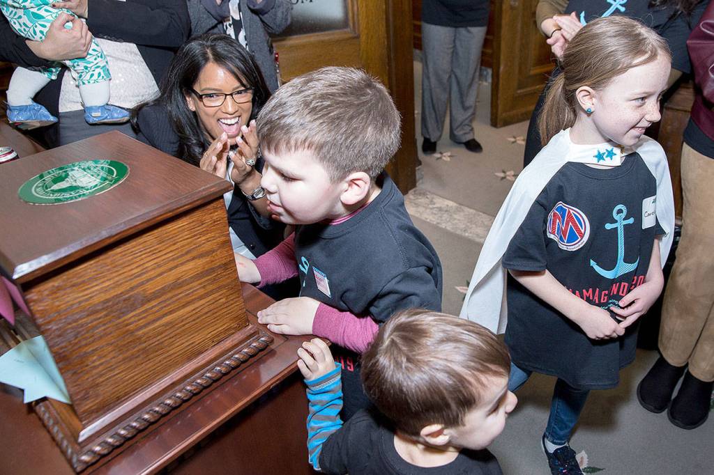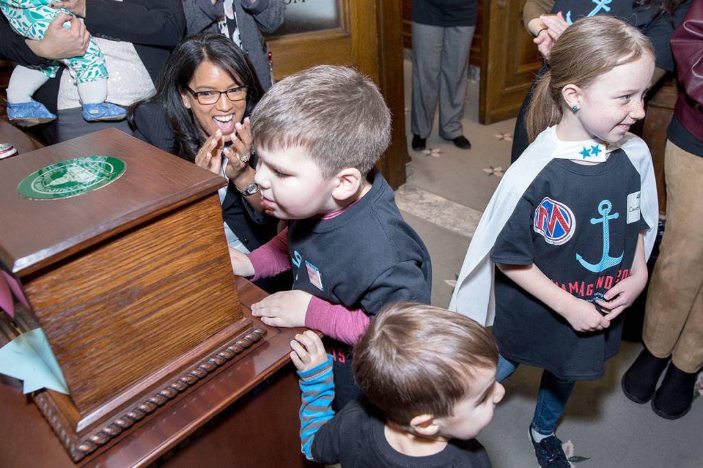 Donning sailor hats and anchor shirts, moms and kids were on deck in Olympia on Jan. 16 to make waves and ask lawmakers to support the “Mamagenda,” setting the course for policies that support family caregivers in the workplace, invest in high-quality early learning, make childcare affordable, close the wage gap, and clean up the state’s tax code.