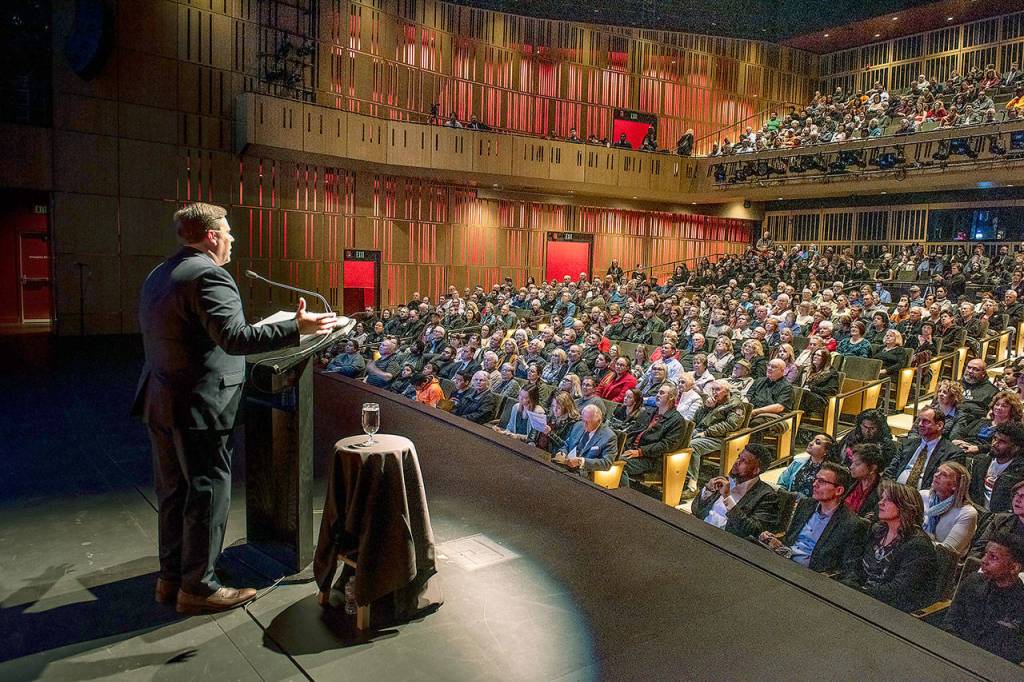Federal Way Mayor Jim Ferrell gave his annual State of the City address to a full house at the Federal Way Performing Arts and Events Center Feb. 28.