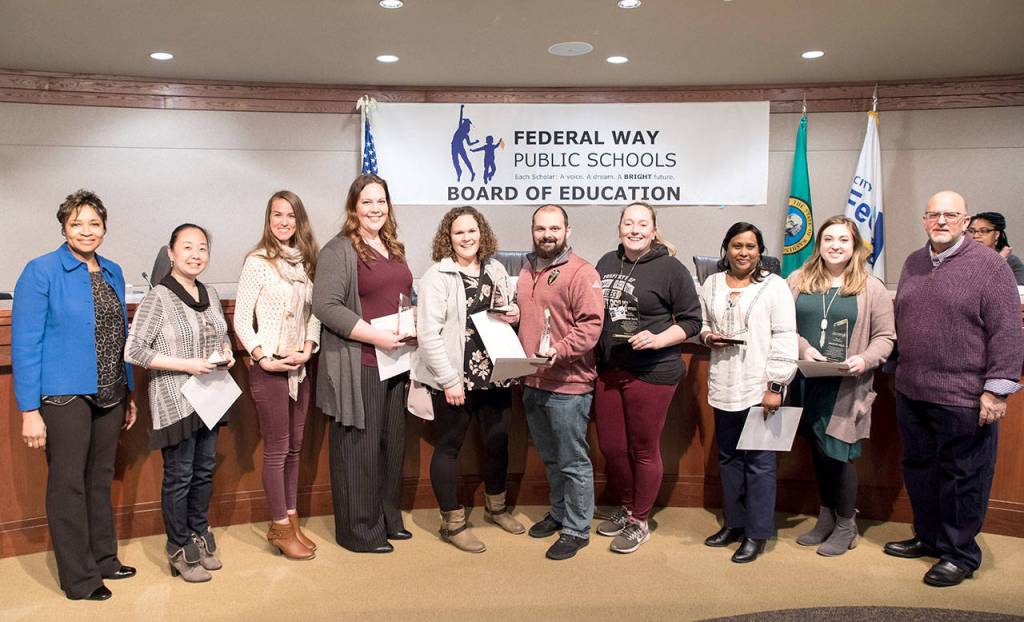 Federal Way Public School teachers who earned National Board for professional teaching standards certification in 2018 were honored by the district’s school board at the Feb. 26 meeting.