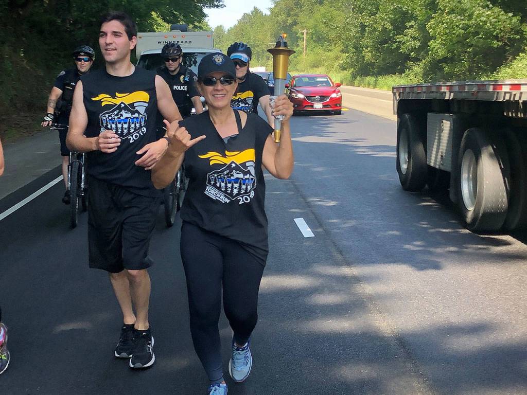 On May 31 around 2 p.m., the Special Olympics torch called the “Flame of Hope” was passed off to FWPD who carried it from 272nd Street on Pacific Highway S to 373rd Street through downtown Federal Way.