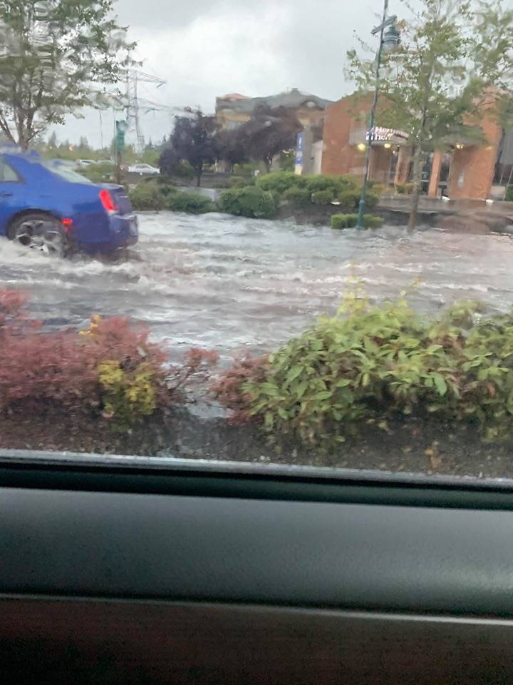 Martin posted a photo of the flooding in Celebration Plaza to a Federal Way community Facebook page, which shows wave-like rapids in a parking lot.