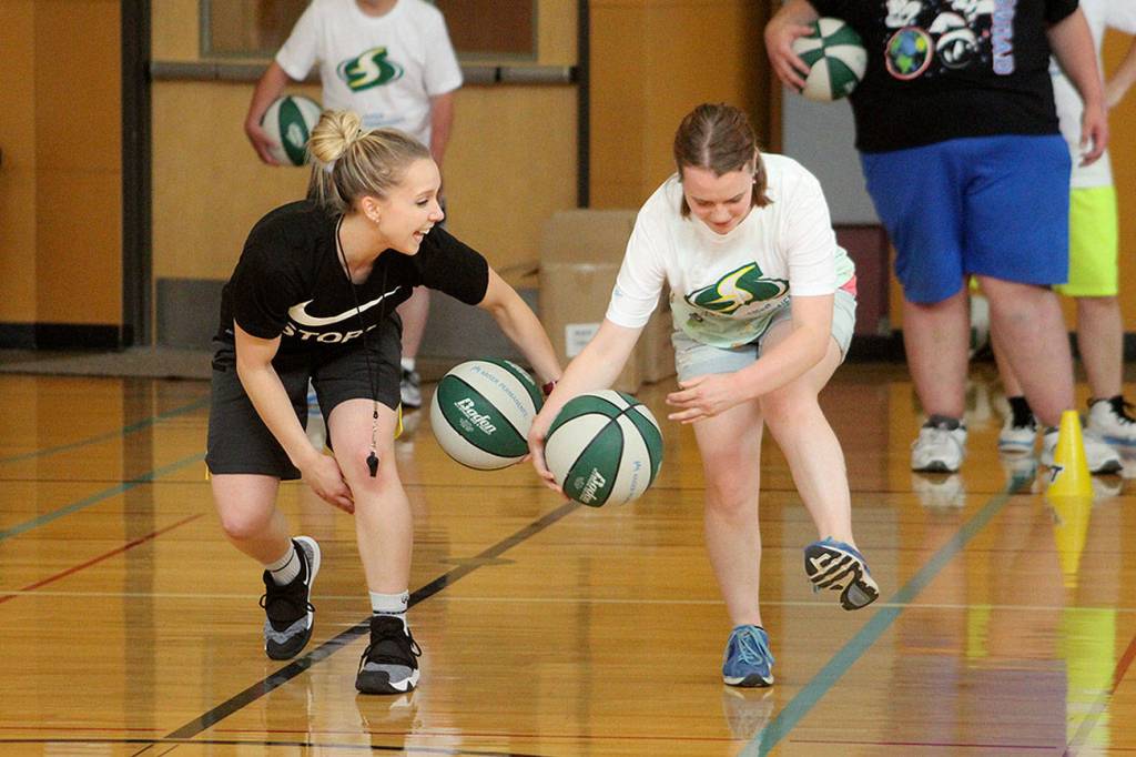 Federal Way’s Special Olympics basketball team had the chance to play with local stars of the Seattle Storm women’s basketball team at a recent StormCares clinic.