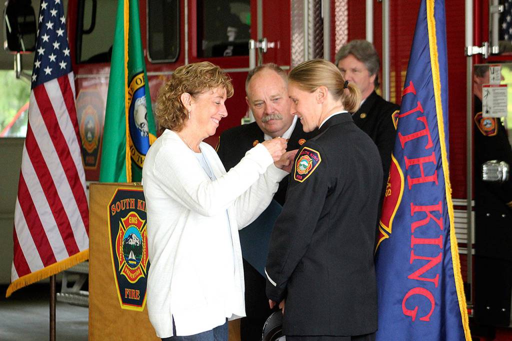 Twelve South King Fire and Rescue members were honored at a badge pinning ceremony last week to celebrate their recent promotions within the department.