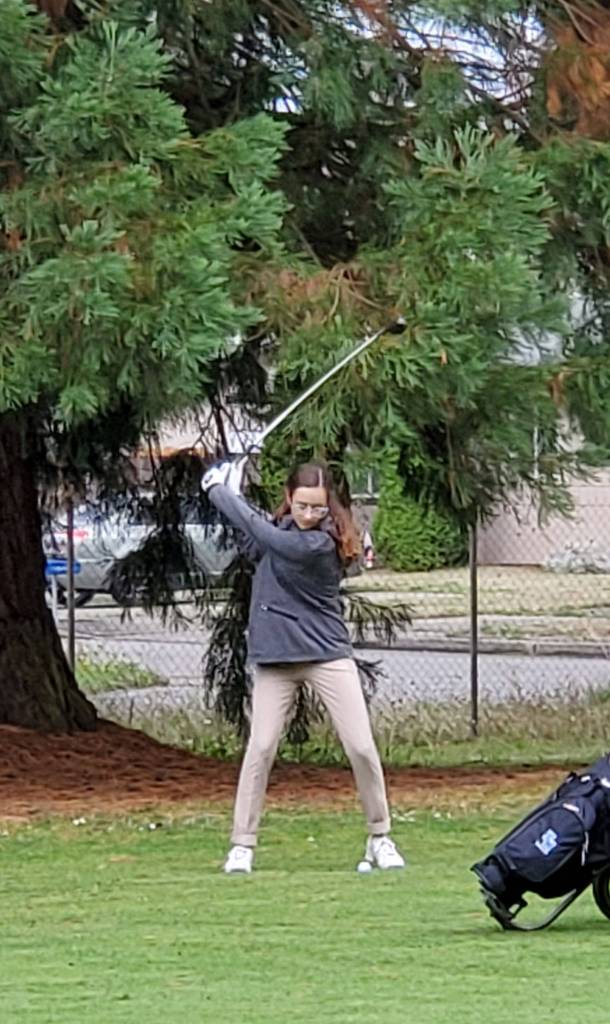 Freshman Kira Nutter had a putt lip out on the seventh hole in her first varsity match.