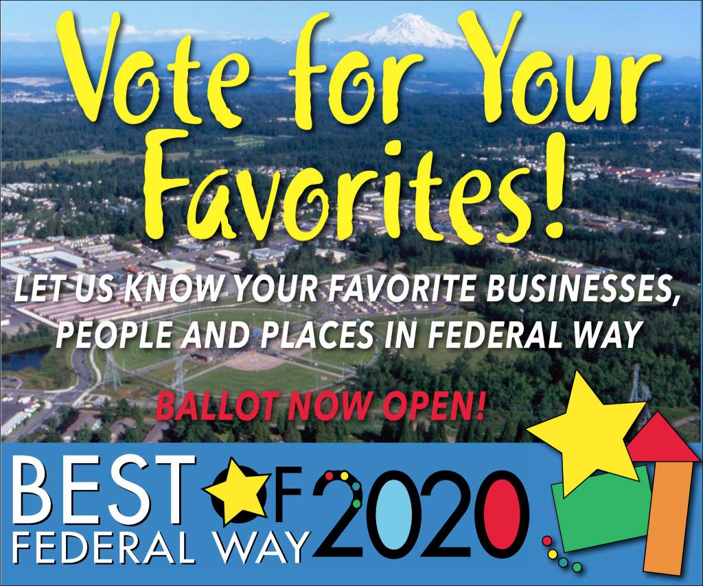 Voting began Nov. 15 and continues until Jan. 31, 2020 for the Best of Federal Way 2020! Click here to vote for your favorite Federal Way restaurants, businesses, community leaders and more.